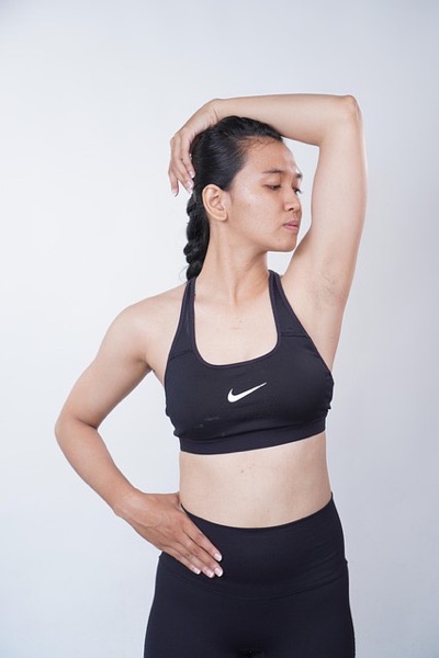 ✔ 한쪽 팔을 가슴 앞으로 뻗고 반대편 팔로 당겨서 어깨 스트레칭 (10초씩 3회)